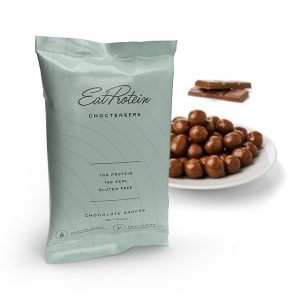 Milk chocolate coating with sweetener (sweetener: maltitol E965, cocoa butter, whole milk powder, cocoa mass, emulsifier: soy lecithin E322, natural vanilla flavour); soy puffs (soy protein, rice starch, rice flour, sugar, anticaking agent: calcium carbonate E170).