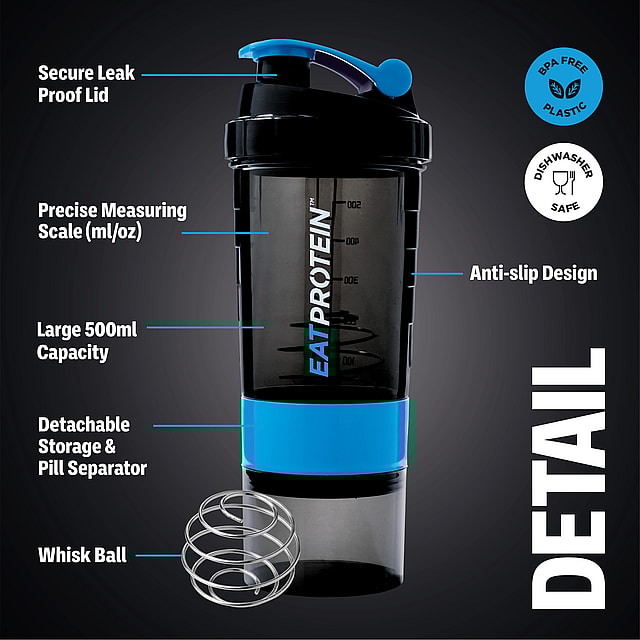 Maximise your fitness goals with the EatProtein® 500ml shaker bottle, your perfect accessory for super-smooth protein shakes on the go.