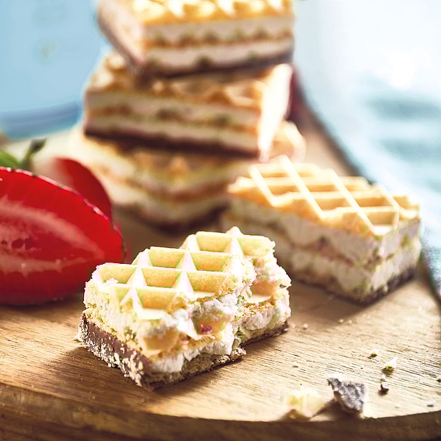 Protein blend (milk protein, hydrolysed gelatine); vegetable oils (palm oil and shea oil); fortified wheat flour (wheat flour (gluten), calcium carbonate, iron, niacin, thiamin); polydextrose; emulsifiers: soy lecithins, mono-diglycerides; vegetable protein; flavours (milk); bamboo fibre; cocoa powder; cornflour; soy flour; sunflower oil; raising agent: sodium bicarbonate; sweeteners: sucralose, potassium acesulfame; salt.